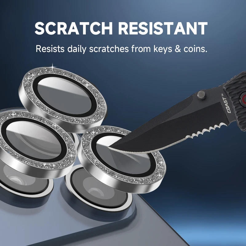 Safeguard your iPhone 17's precious camera lenses in style with our premium glitter diamond camera lens protector. Crafted from 9H hardness tempered glass with advanced PVD coating technology, this professional-grade protector offers superior scratch resistance and durability while maintaining crystal-clear HD photo quality. Compatible exclusively with iPhone 17, our lens protector ensures both style and security for discerning users.